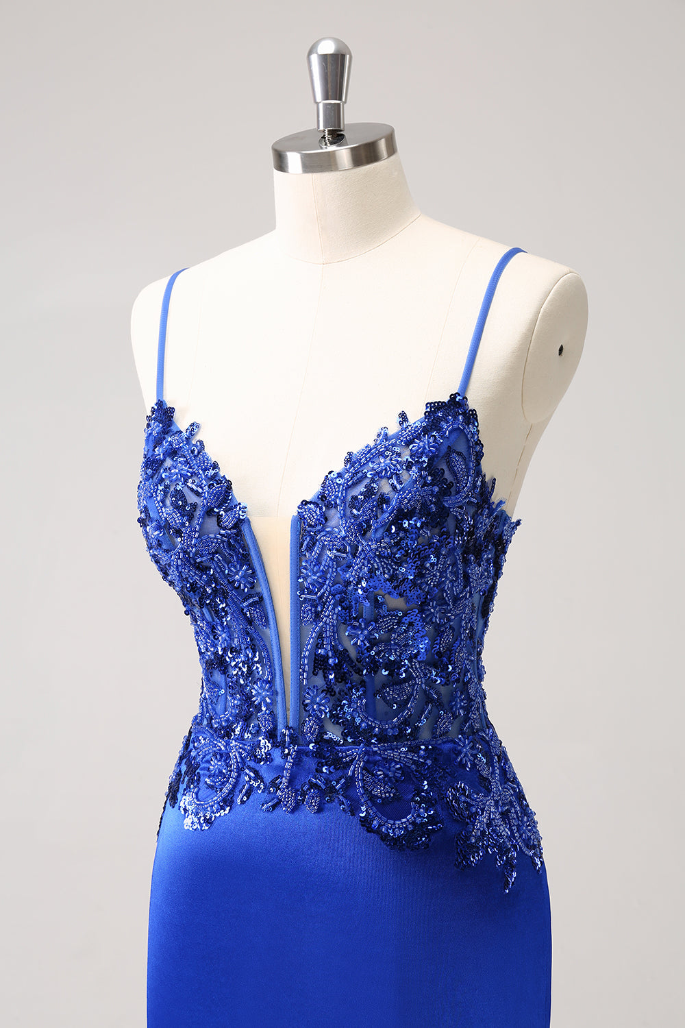Sparkly Royal Blue Sequin Tight Mini Dress With Lace Up Back