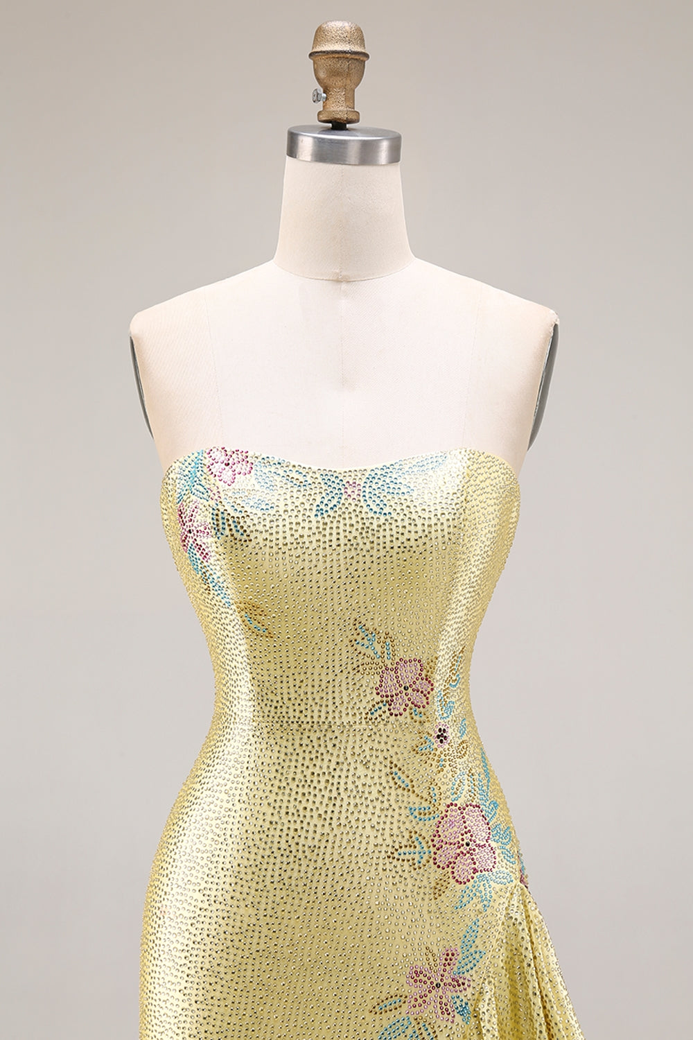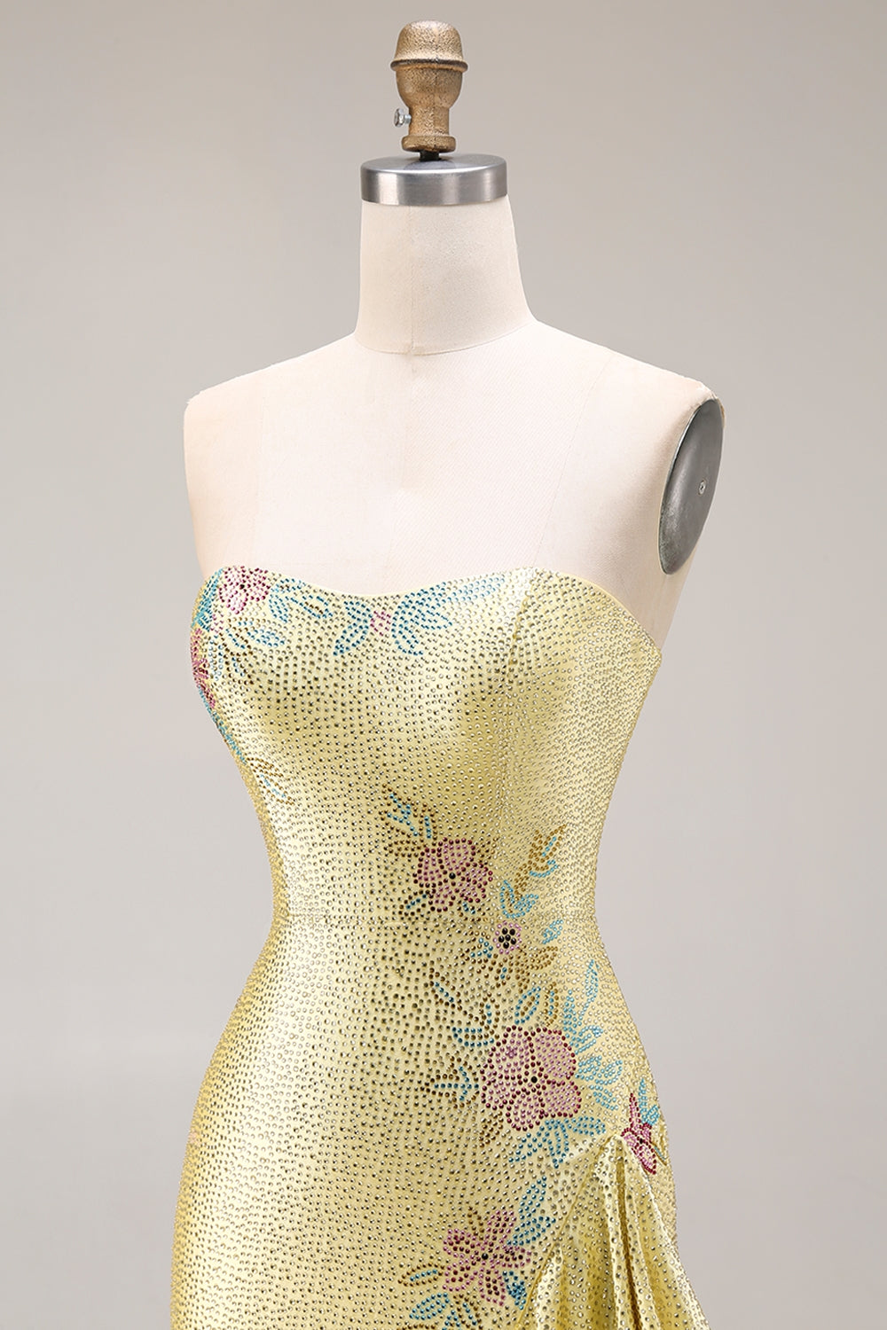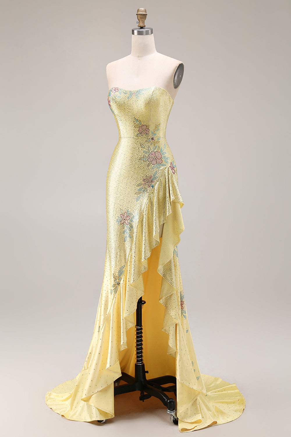 Sparkly Yellow Strapless Mermaid Beaded Prom Dress